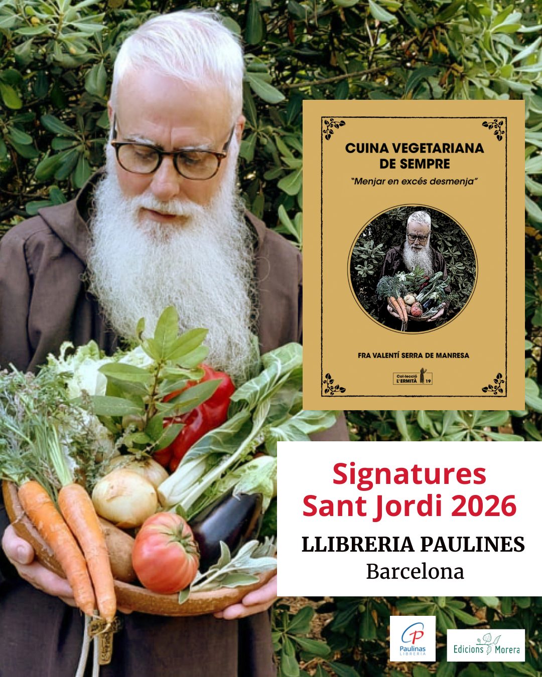 Aquest Sant Jordi, Fra Valentí Serra de Manresa, un dels autors més destacats d’Edicions Morera, serà a la llibreria Paulines de Barcelona per signar exemplars del seu darrer llibre Cuina vegetariana de sempre i altres títols seus dins de la Col·lecció l’Ermità. Serà una oportunitat per conèixer de prop un dels grans divulgadors de la cultura popular i de la tradició gastronòmica i remeiera catalana.