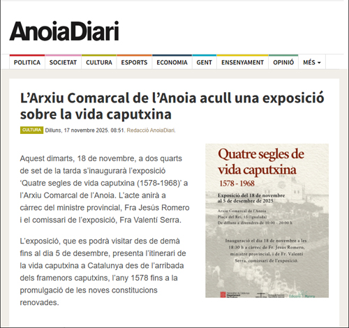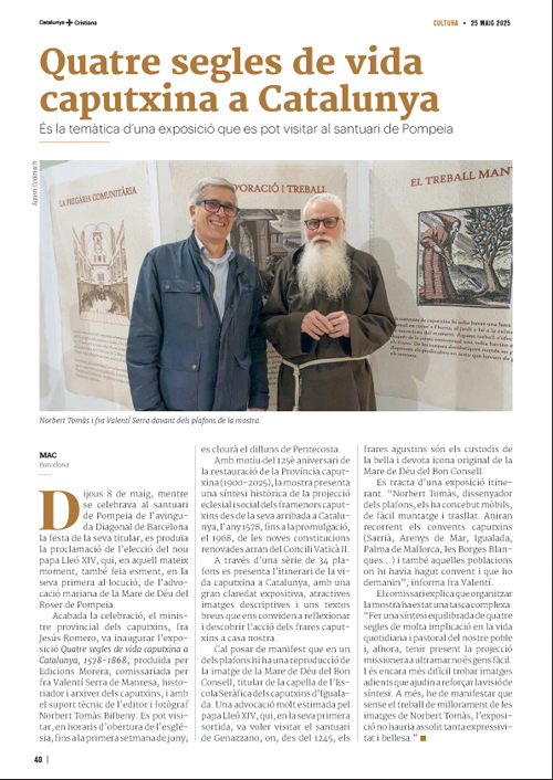 Amb motiu del 125è aniversari de la restauració de la Província caputxina (1900-2025), la mostra presenta una síntesi històrica de la projecció eclesial i social dels framenors caputxins des de la seva arribada a Catalunya, l’any 1578, fins a la promulgació, l’any 1968, de les noves constitucions renovades ran del Concili Vaticà II.