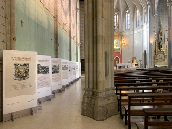 A través d’una sèrie de 34 plafons es presenta l’itinerari de la vida caputxina a Catalunya, amb una gran claredat expositiva, atractives imatges descriptives i un textos molt breus que ens conviden a reflexionar i descobrir l’acció dels frares caputxins a casa nostra.